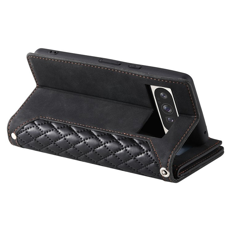 Style 005 For Google Pixel 9 Pro XL Wallet Case Rhombus PU Leather Zipper Phone Cover - Black