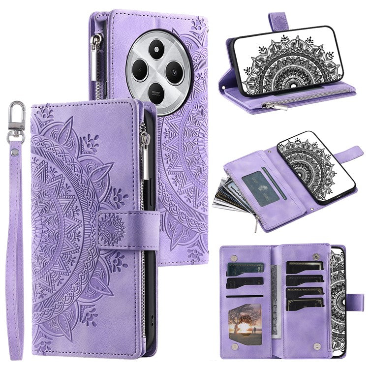 Style 006 For Xiaomi Poco C75 4G / Redmi 14R 5G / 14C 4G Case Mandala Flower Pattern PU Leather Zipper Wallet Phone Cover - Purple
