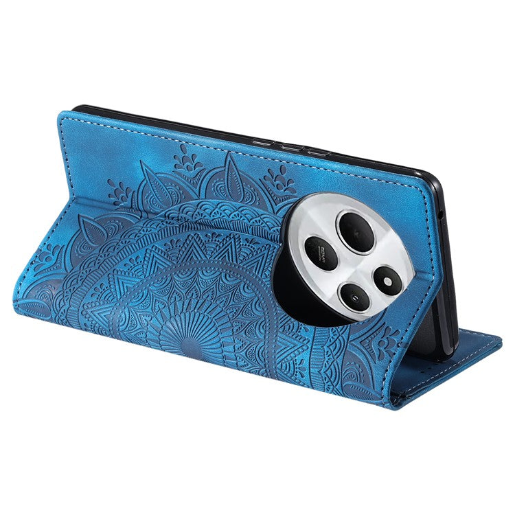 Style 010 For Xiaomi Poco C75 4G / Redmi 14R 5G / 14C 4G Wallet Stand Case Imprinted Leather Phone Cover - Blue
