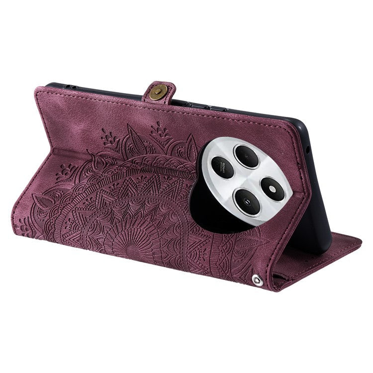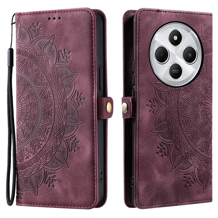 Style 016 For Xiaomi Poco C75 4G / Redmi 14R 5G / 14C 4G Case Skin Feel Totem Imprinted Wallet Leather Phone Cover - Wine Red