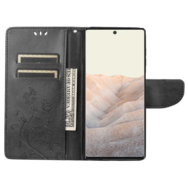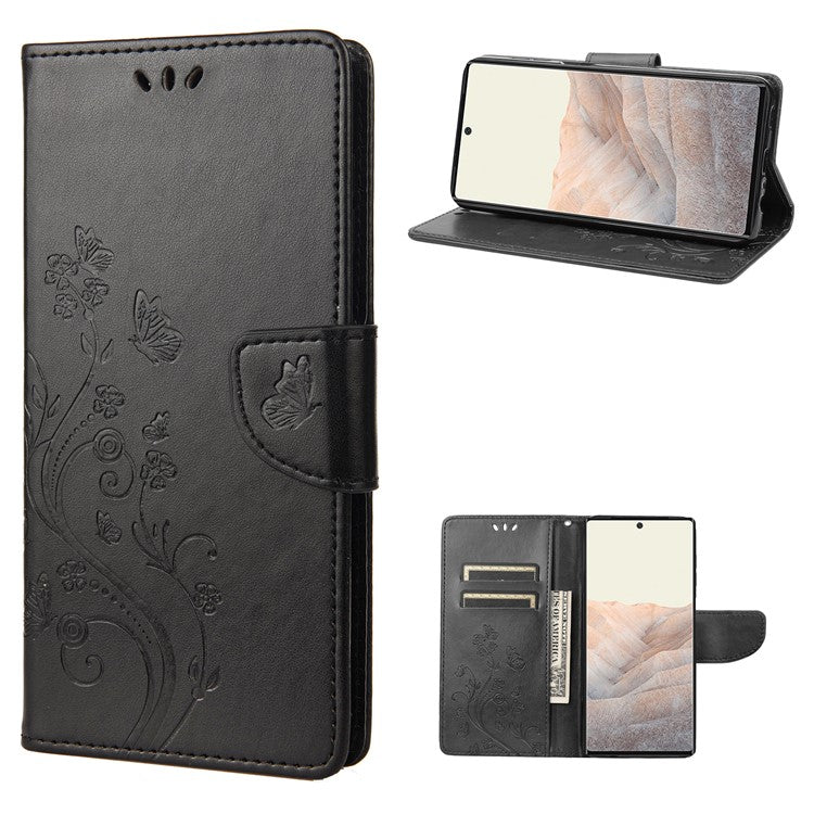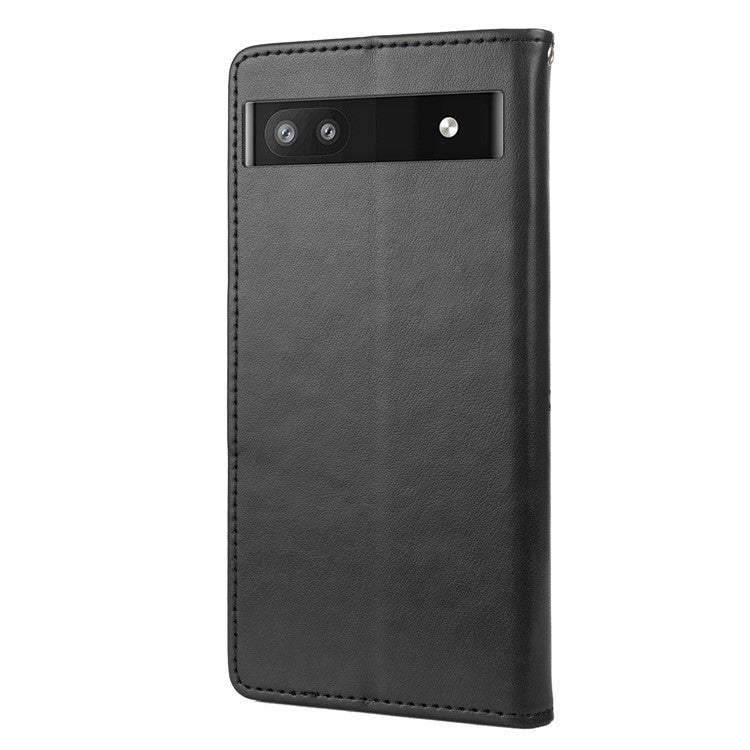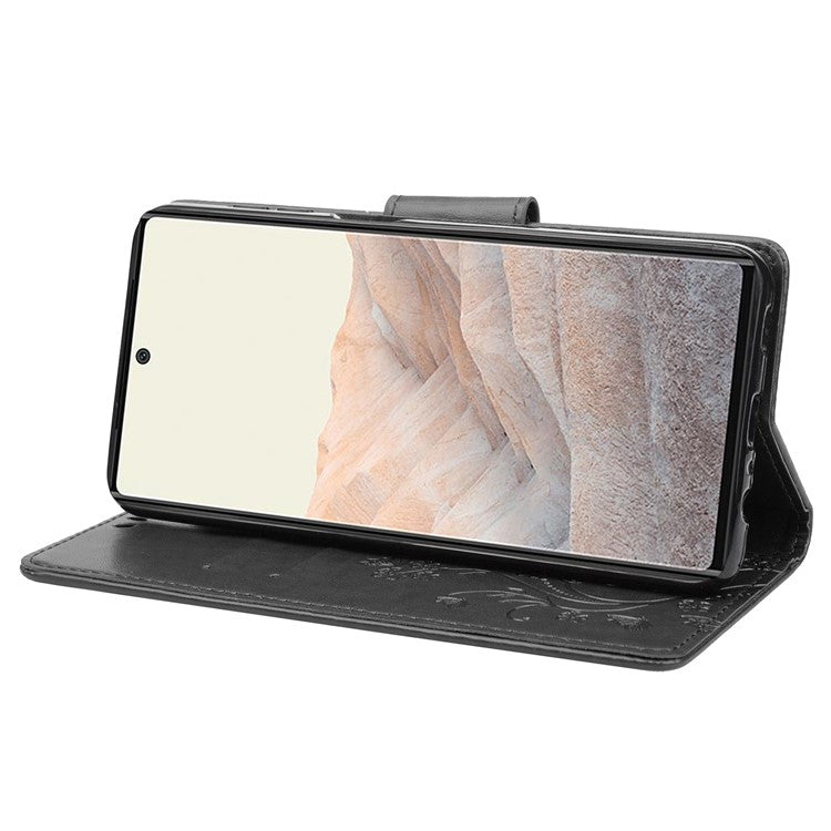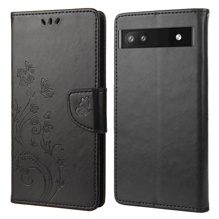Stylish Imprint Butterflies Leather Phone Case Practical Wallet Stand Covering for Google Pixel 6a - Black