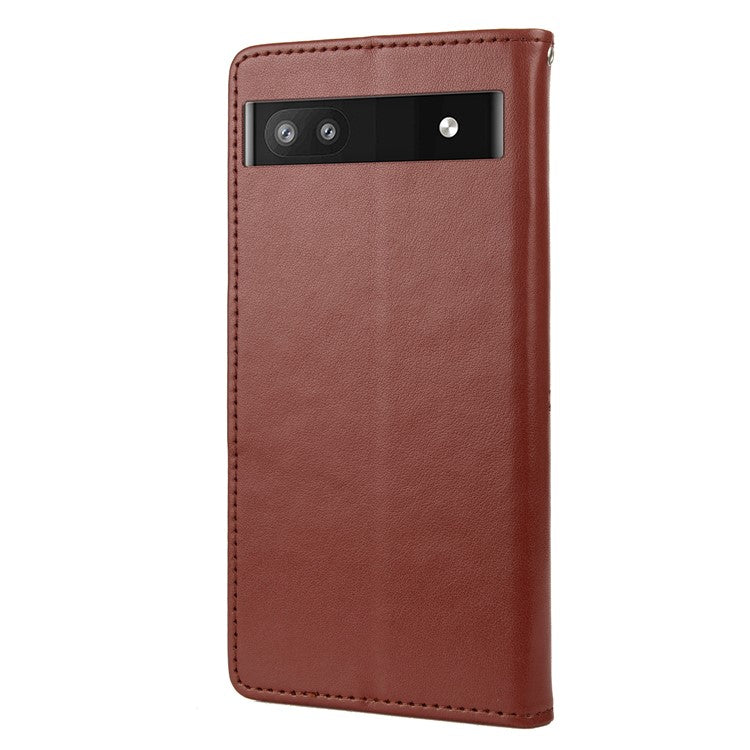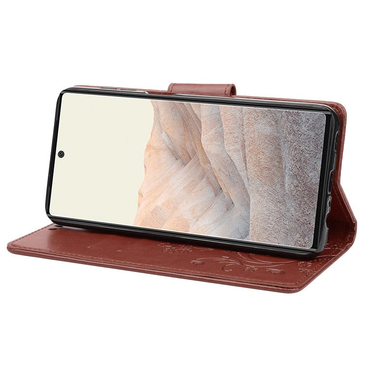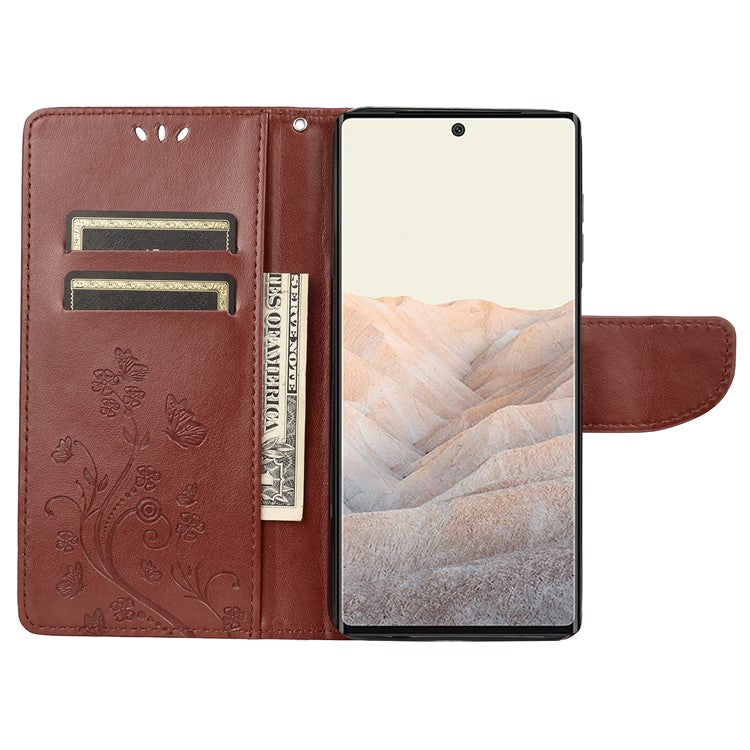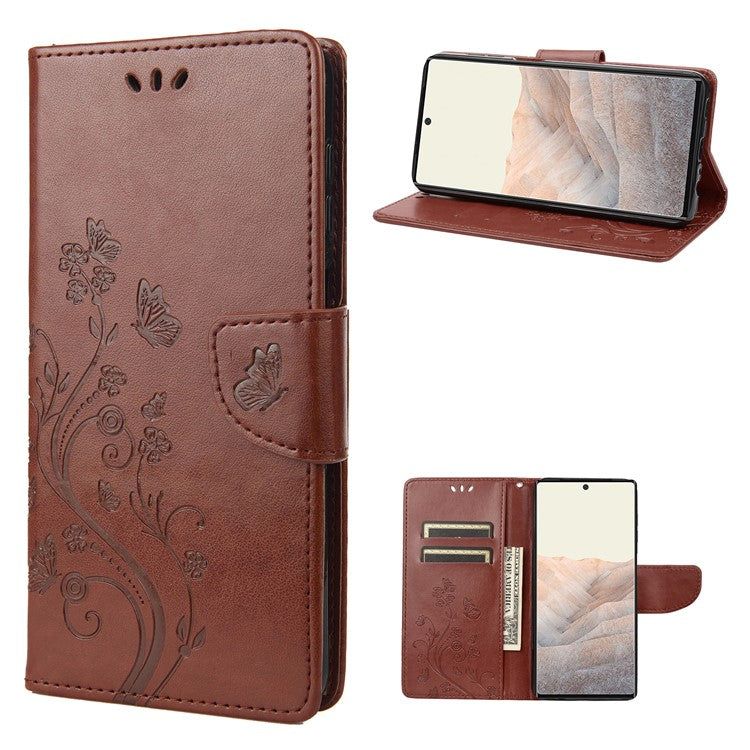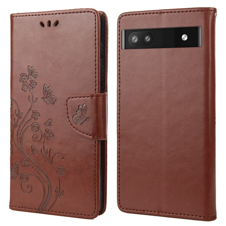 Stylish Imprint Butterflies Leather Phone Case Practical Wallet Stand Covering for Google Pixel 6a - Brown