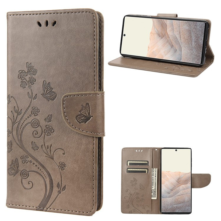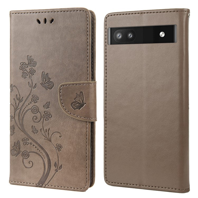 Stylish Imprint Butterflies Leather Phone Case Practical Wallet Stand Covering for Google Pixel 6a - Grey