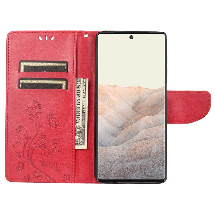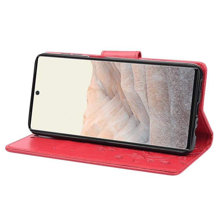 Stylish Imprint Butterflies Leather Phone Case Practical Wallet Stand Covering for Google Pixel 6a - Red