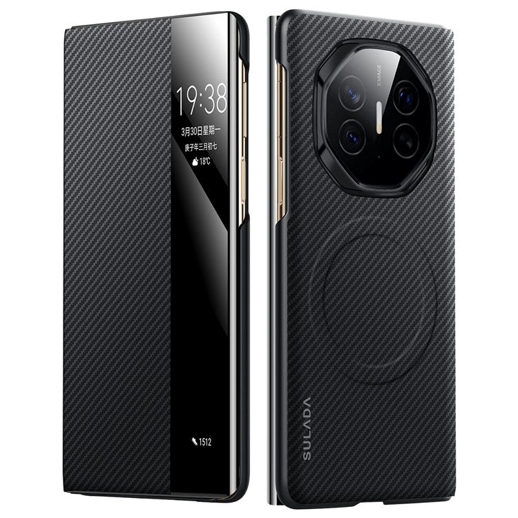 SULADA For Huawei Mate XT Ultimate Case View Window Leather Phone Cover with Auto Wake / Sleep - Black