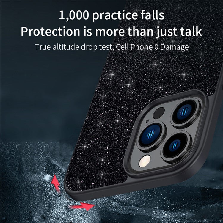 SULADA For iPhone 16 Pro Case PU Leather+PC+TPU Glitter Sequins Back Phone Cover - Black