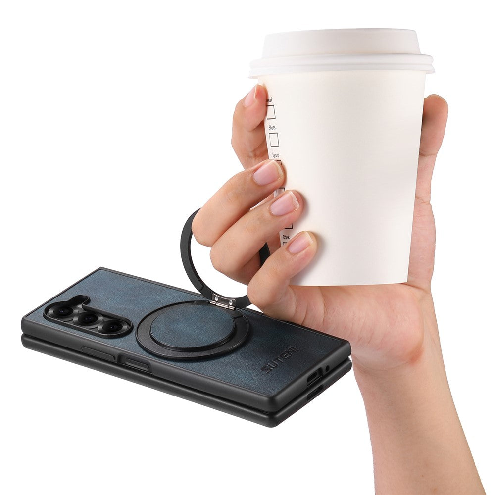 SUTENI G3 For Samsung Galaxy Z Fold7 5G Case Compatible with MagSafe Waxy Texture Rotating Kickstand Leather Phone Back Cover - Blue