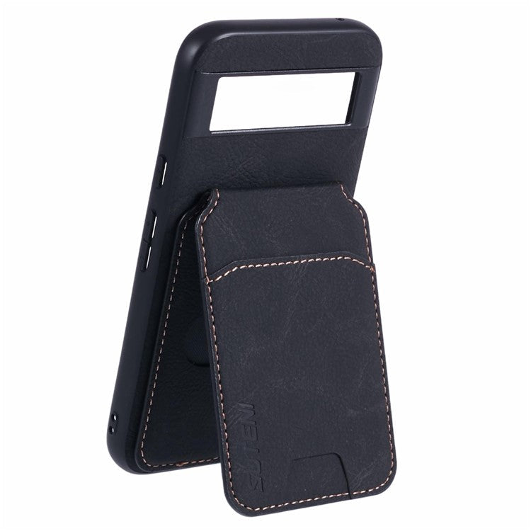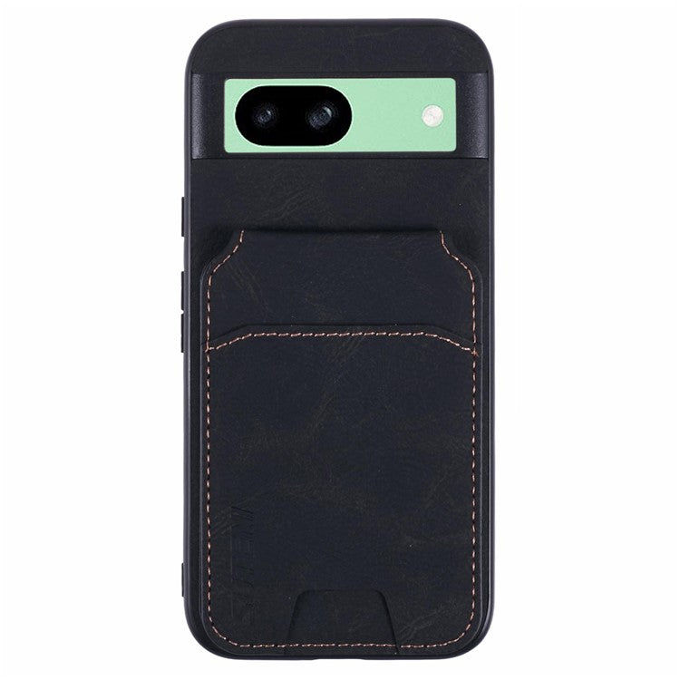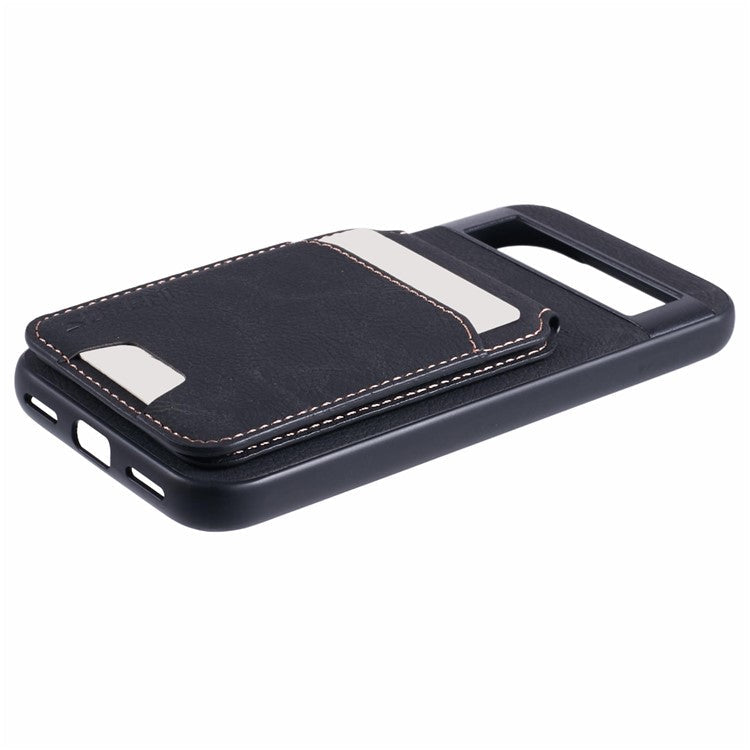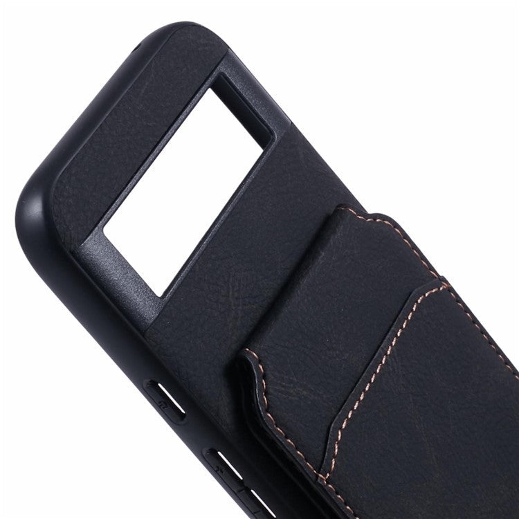 SUTENI H02 For Google Pixel 8a Case Card Slots Kickstand Litchi Texture Leather+TPU Cover - Black