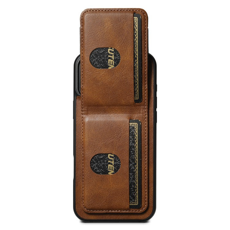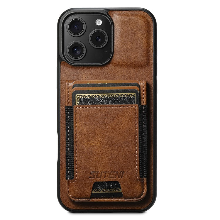 SUTENI H03 For iPhone 16 Pro Case Card Holder Waxy Texture Leather+TPU Phone Cover - Brown