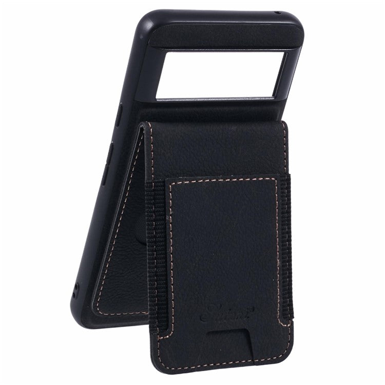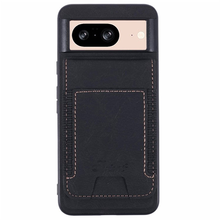 SUTENI H17 For Google Pixel 8 Case Compatible with MagSafe Card Slots PU+TPU Kickstand Phone Cover - Black