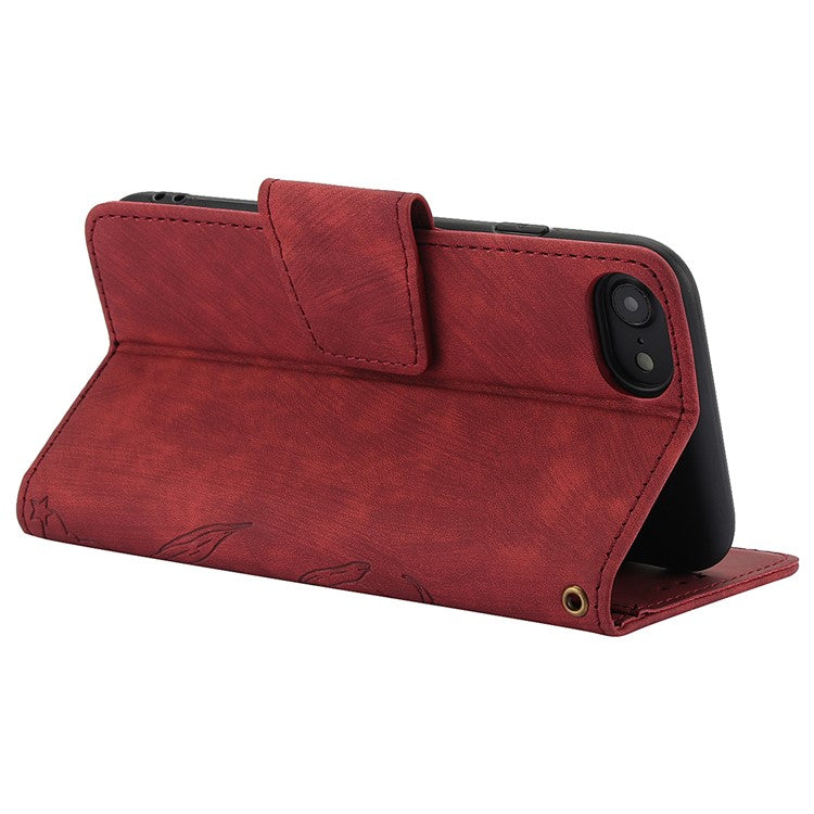 SY-001 For iPhone 16e Case Butterfly Flower Anti-Scratch Leather Phone Cover - Red