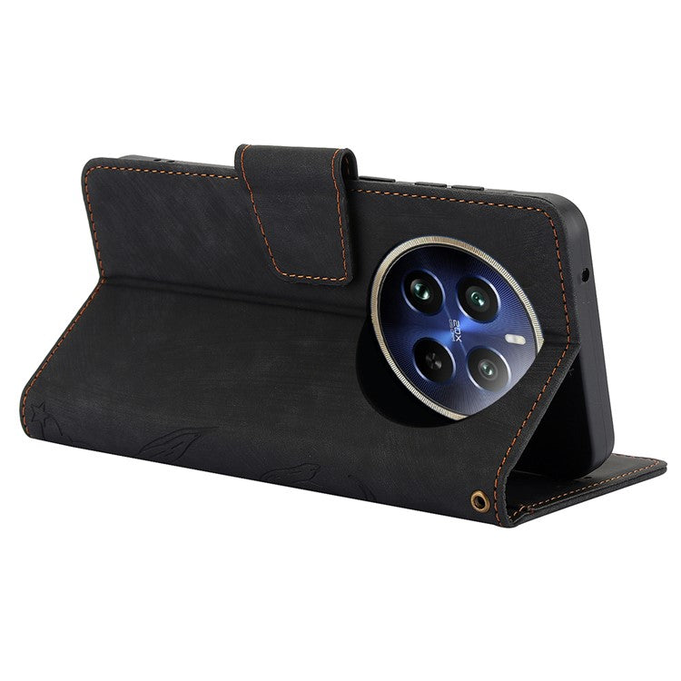 SY-001 For Realme 12 Pro 5G / 12 Pro+ 5G Case with Wrist Strap Butterfly Flower Leather Phone Cover Folio Wallet - Black