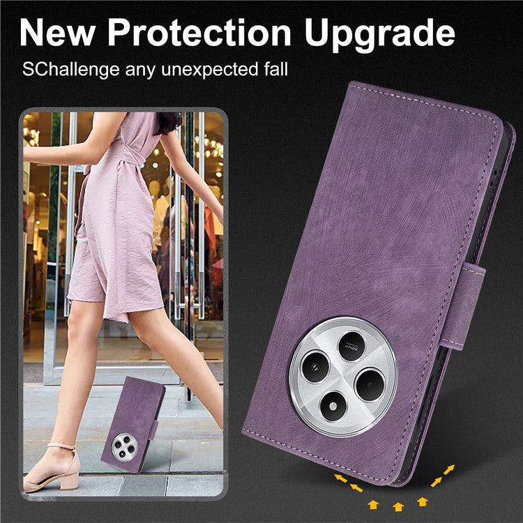 SY-001 For Xiaomi Poco C75 4G / Redmi 14R 5G / 14C 4G Case Flower Butterfly Leather Wallet Phone Cover with Hand Strap - Purple
