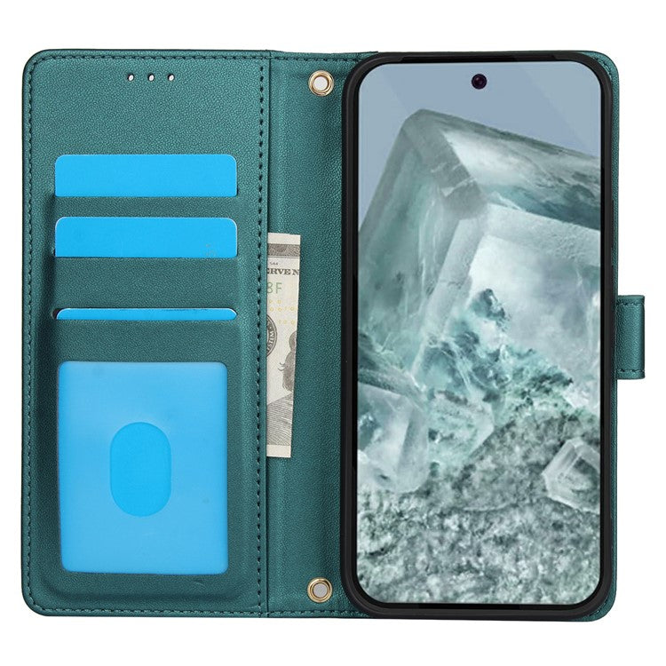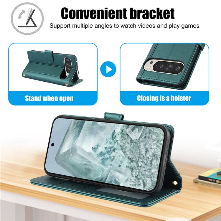 SY-003 For Google Pixel 9 Pro XL Case PU Leather Stand View Phone Wallet Cover with Hand Strap - Green