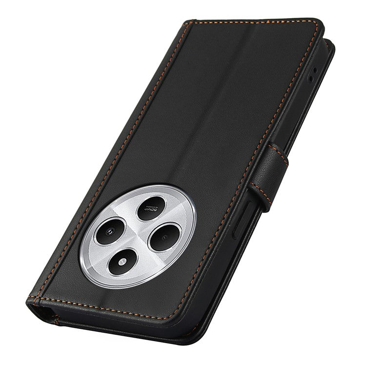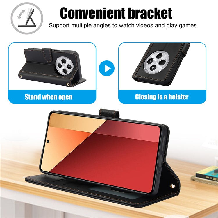 SY-003 For Xiaomi Poco C75 4G / Redmi 14R 5G / 14C 4G Case PU Leather Stand View Phone Wallet Cover with Shoulder Strap - Black