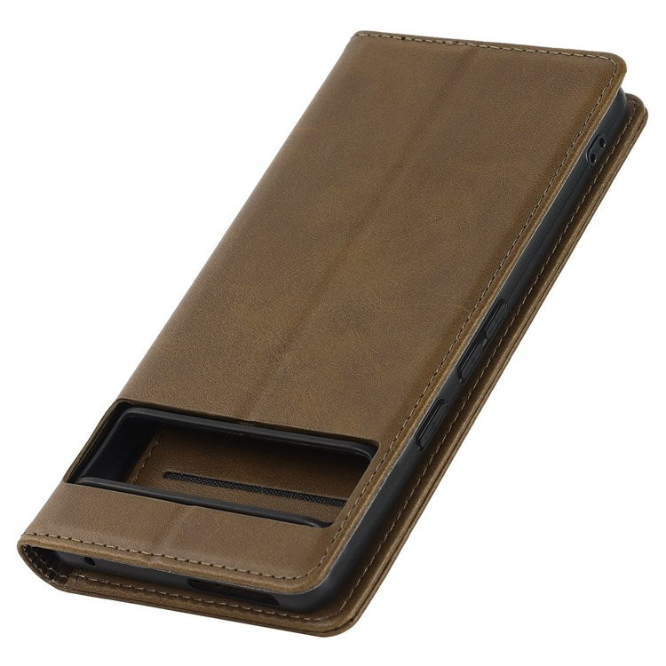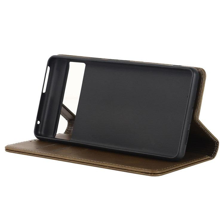 Textured PU Leather Case for Google Pixel 7 5G, Stand Wallet Design Auto Closing Magnetic Phone Cover - Dark Green