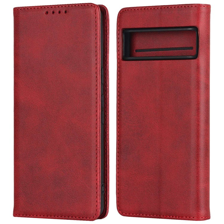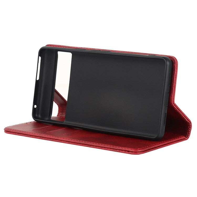 Textured PU Leather Case for Google Pixel 7 5G, Stand Wallet Design Auto Closing Magnetic Phone Cover - Red