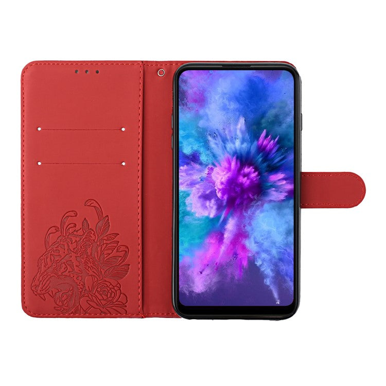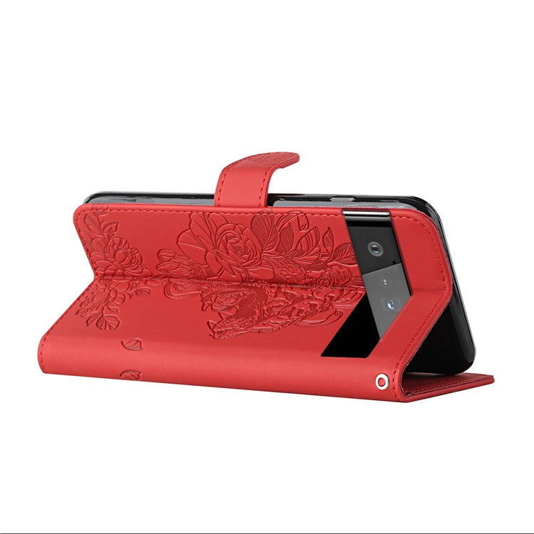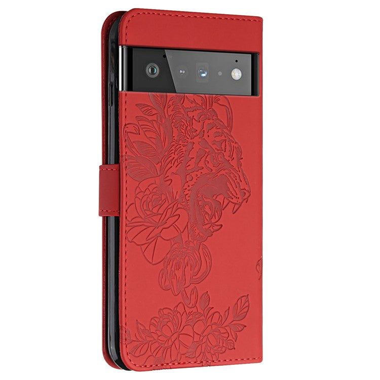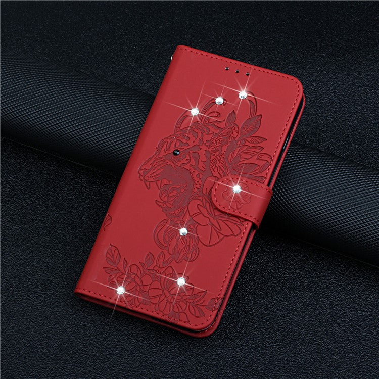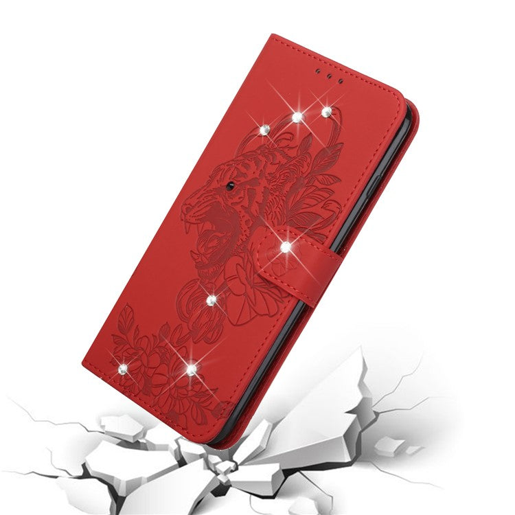 Tiger Head Imprinted Rhinestone Design Wallet Stand Leather Protective Phone Case Shell for Google Pixel 6 Pro - Red