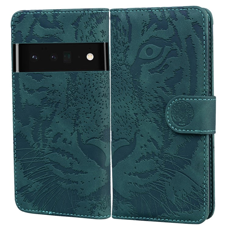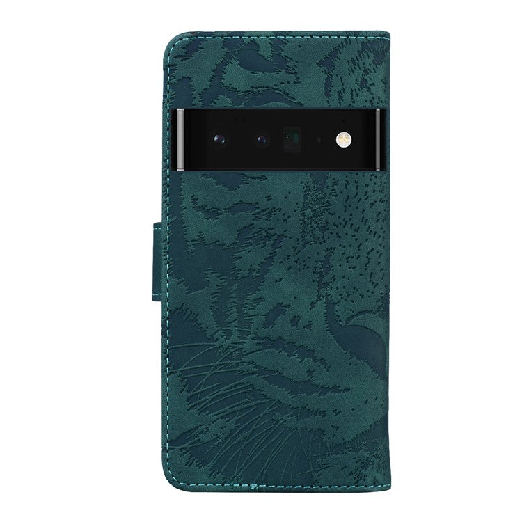 Tiger Imprinted PU Leather Phone Flip Case Cover with Wallet Stand for Google Pixel 6 Pro - Green