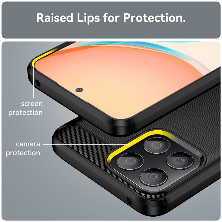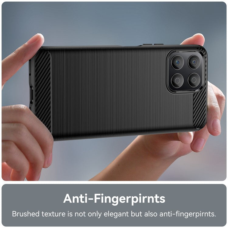 TPU Phone Case for Honor X30i Anti-Fall Shockproof Case Carbon Fiber Texture Brushed Phone Cover - Black