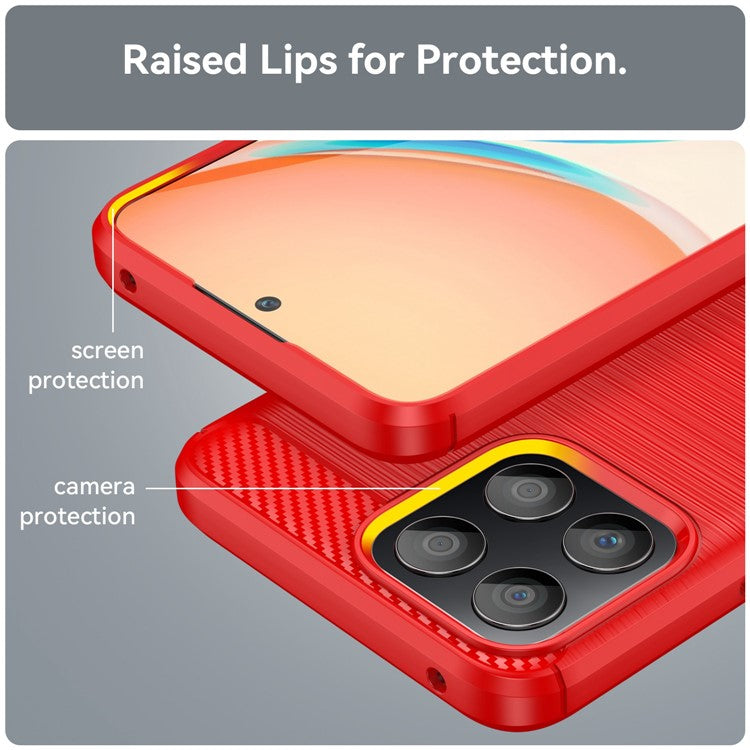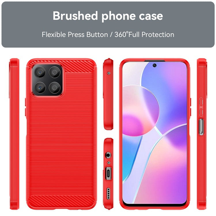 TPU Phone Case for Honor X30i Anti-Fall Shockproof Case Carbon Fiber Texture Brushed Phone Cover - Red