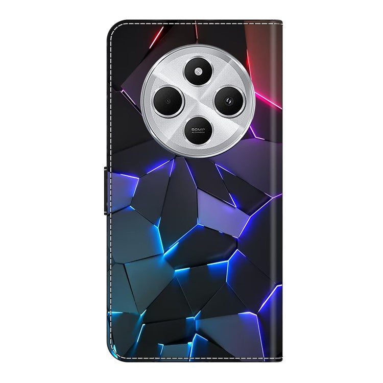 TPU+PU Leather Flip Phone Case For Xiaomi Redmi 14C 4G / 14R 5G / Poco C75 4G Pattern Printed Protective Cover - Blue Cracks