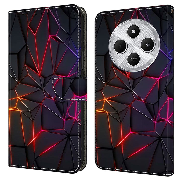 TPU+PU Leather Flip Phone Case For Xiaomi Redmi 14C 4G / 14R 5G / Poco C75 4G Pattern Printed Protective Cover - Red Cracks
