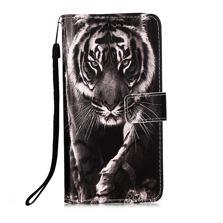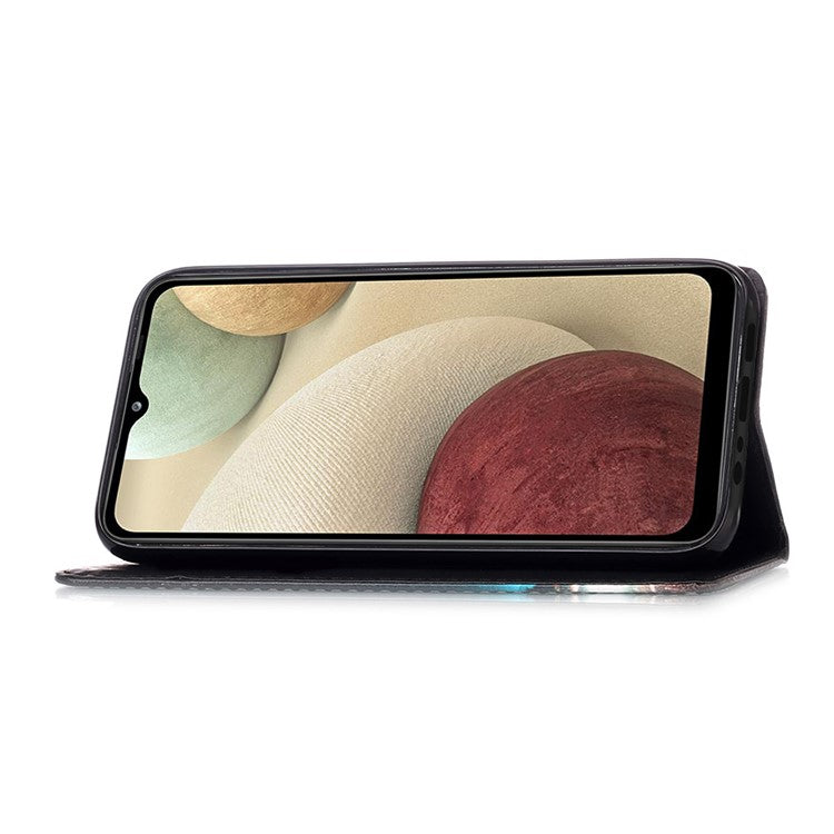 TPU + PU Leather Wallet Stand Case with Pattern Printing for Samsung Galaxy A12/M12 - Tiger