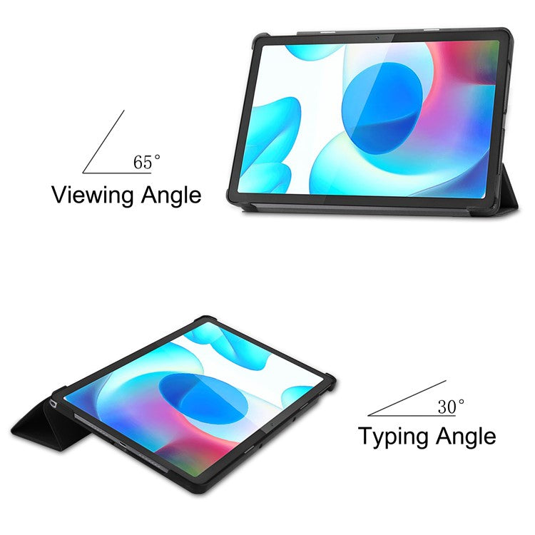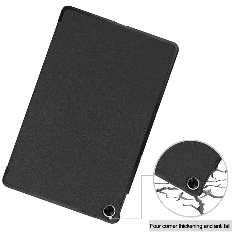 Trifold Stand PU Leather Hard PC Inner Shockproof Protective Tablet Cover for Realme Pad 10.4 - Black