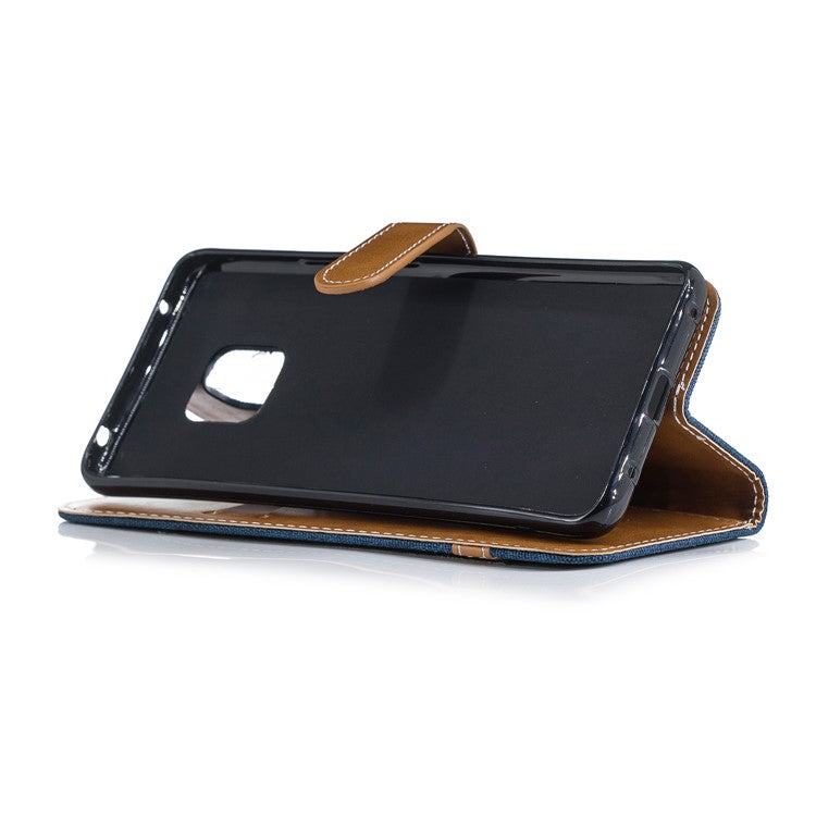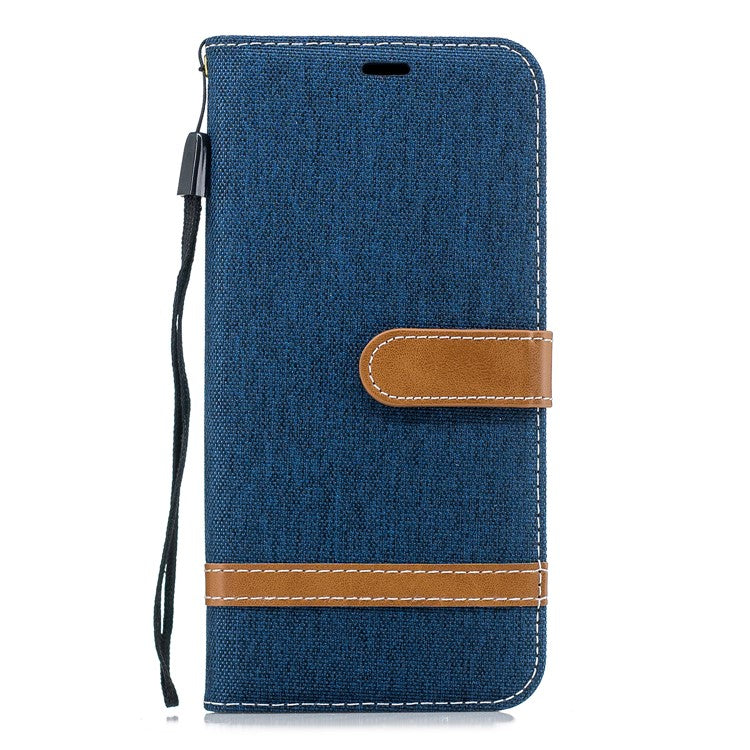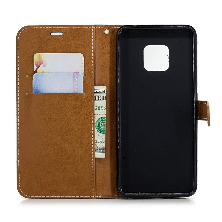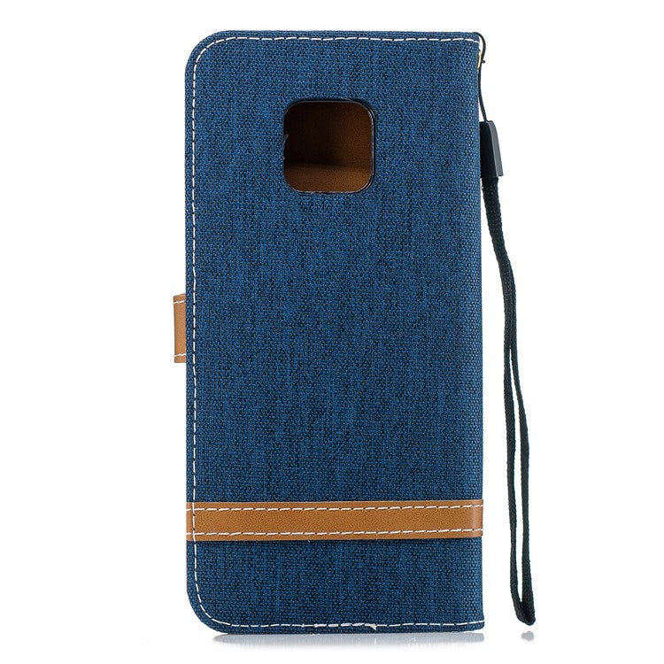Two-tone Jean Cloth PU Leather Flip Mobile Phone Cover for Huawei Mate 20 Pro - Dark Blue