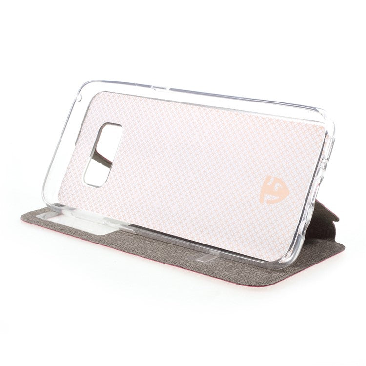 View Window Touch Slide Leather Stand Phone Case for Samsung Galaxy S8 - Red