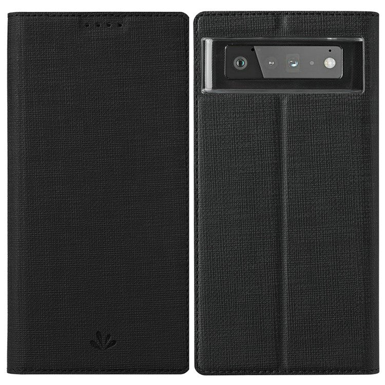 VILI DMX Series PU Leather Flip Folio Magnetic Protective Stand Cover with Card Slot Holder for Google Pixel 6 - Black