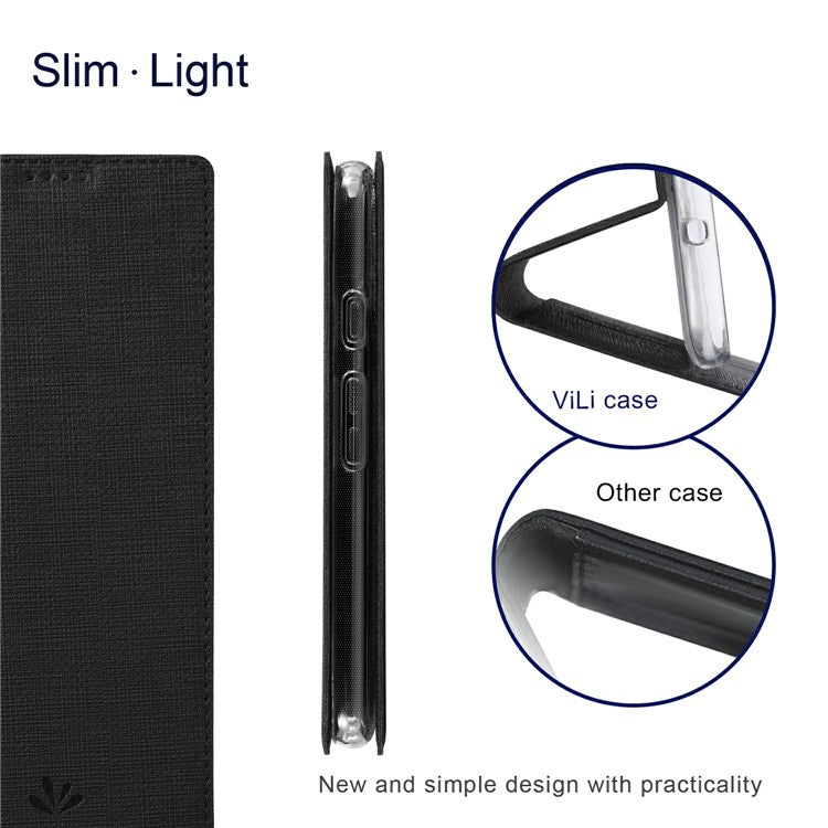 VILI DMX uses good quality PU leather, TPU, and PET materials, with simple cross texture, protecting your iPhone in compact style. The built-in one-card slot is designed for storing your cards. The case can be folded as a supporting stand for easy viewing. It protects your phone from scratches, bumps, dings, and other damages in daily use.
