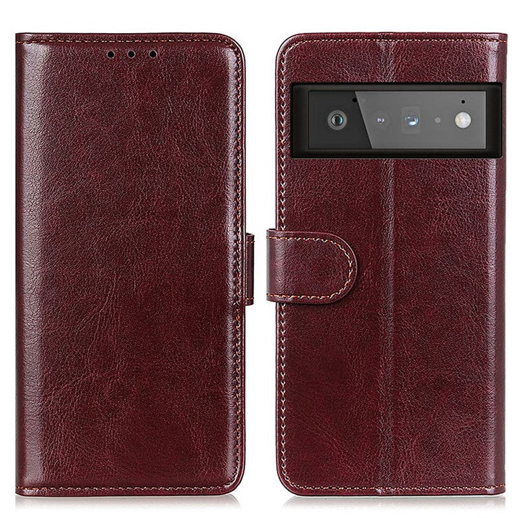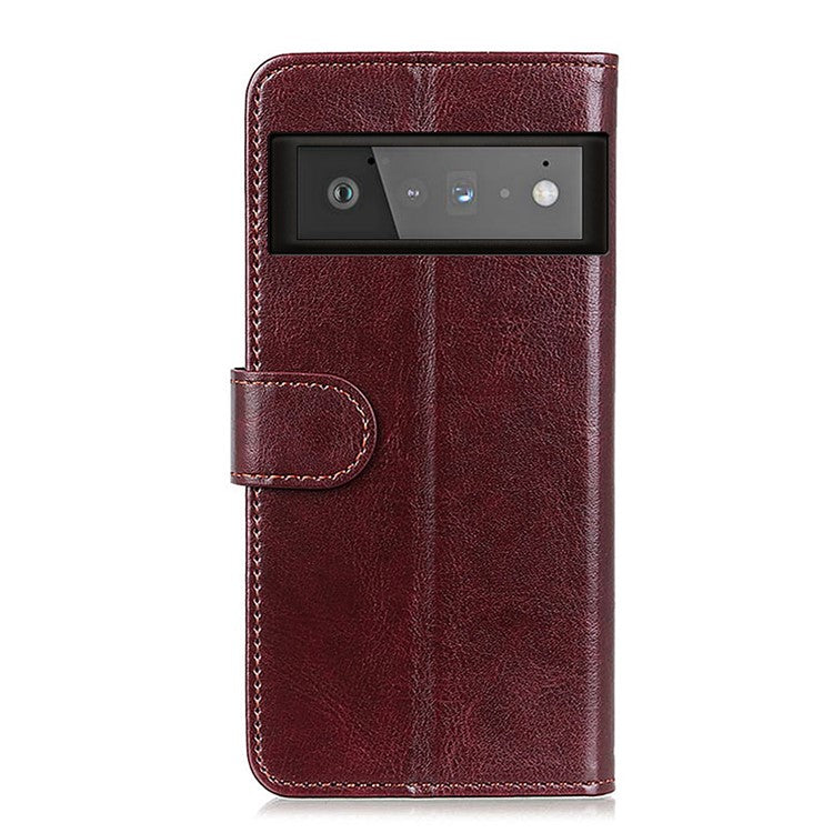Wallet Design Drop-proof Crazy Horse Skin Leather Phone Stand Protective Shell for Google Pixel 6 Pro - Brown