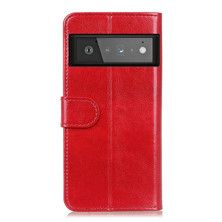 Wallet Design Drop-proof Crazy Horse Skin Leather Phone Stand Protective Shell for Google Pixel 6 Pro - Red