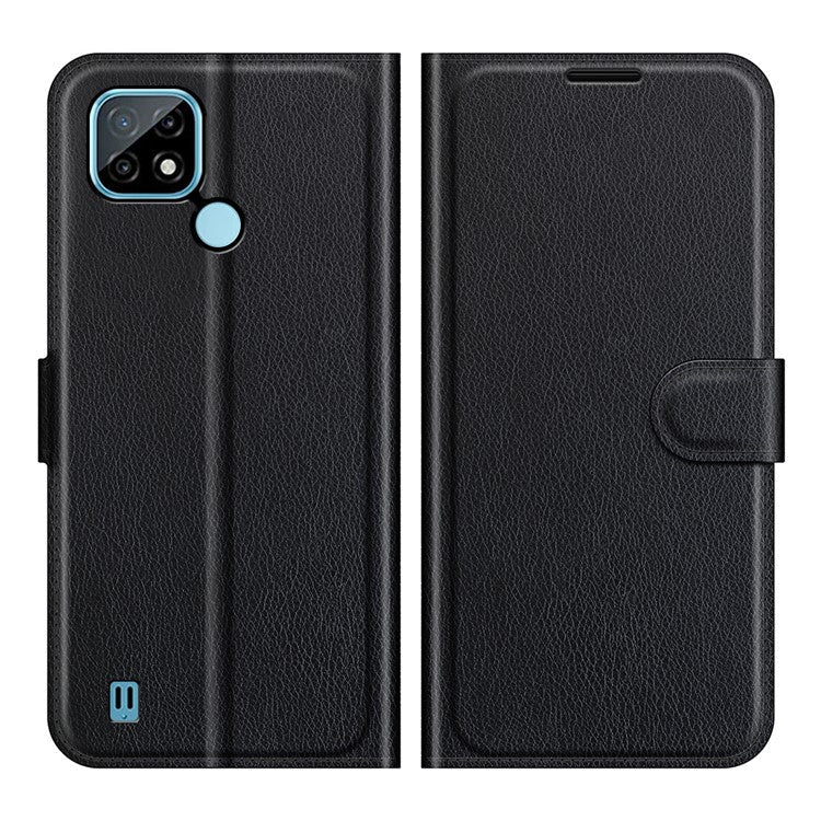 Wallet Design Litchi Texture Leather Phone Case Folio Flip Cover with Stand for Realme C21 - Black