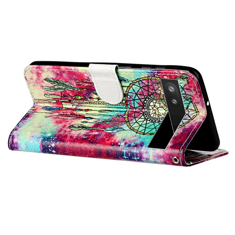 Wallet Phone Case for Google Pixel 7a Anti-Drop Shockproof Case Pattern Printing Leather Flip Cover - Green Wind Chime