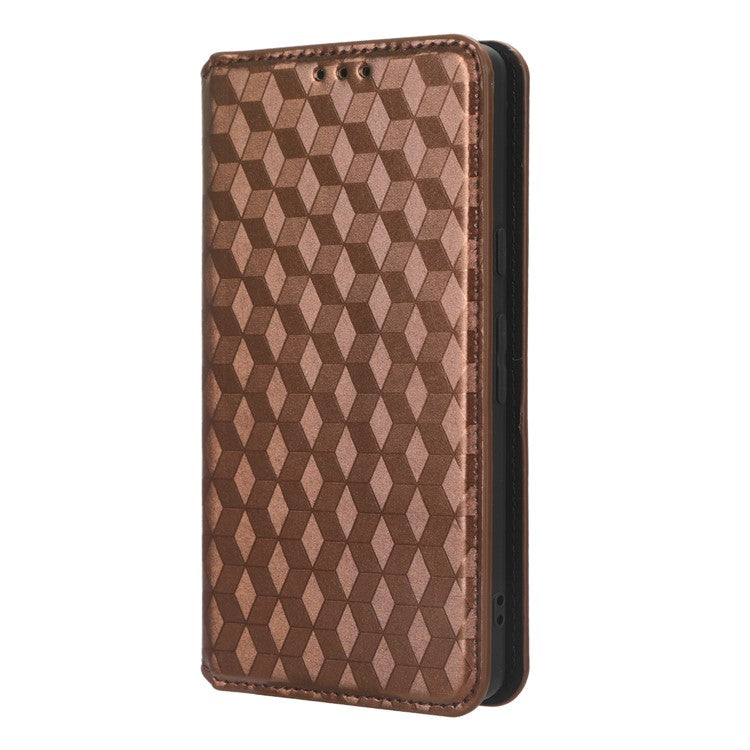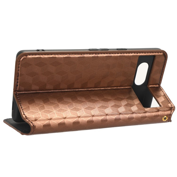 Wallet Phone Case for Google Pixel 7a , PU Leather Imprinted Rhombus Pattern Flip Folio Stand Phone Cover - Brown