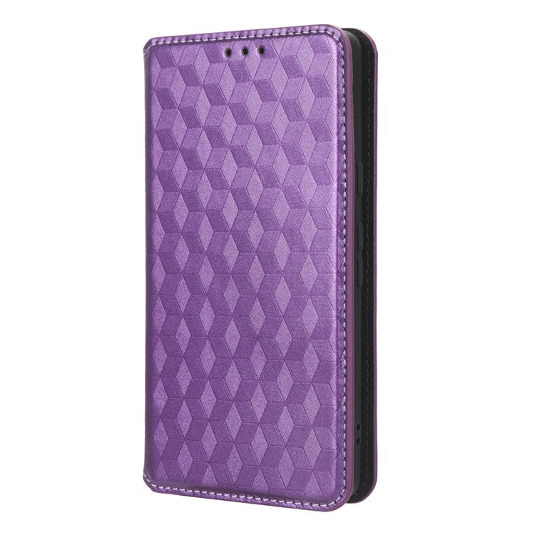 Wallet Phone Case for Google Pixel 7a , PU Leather Imprinted Rhombus Pattern Flip Folio Stand Phone Cover - Purple