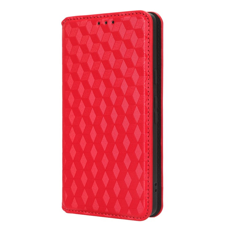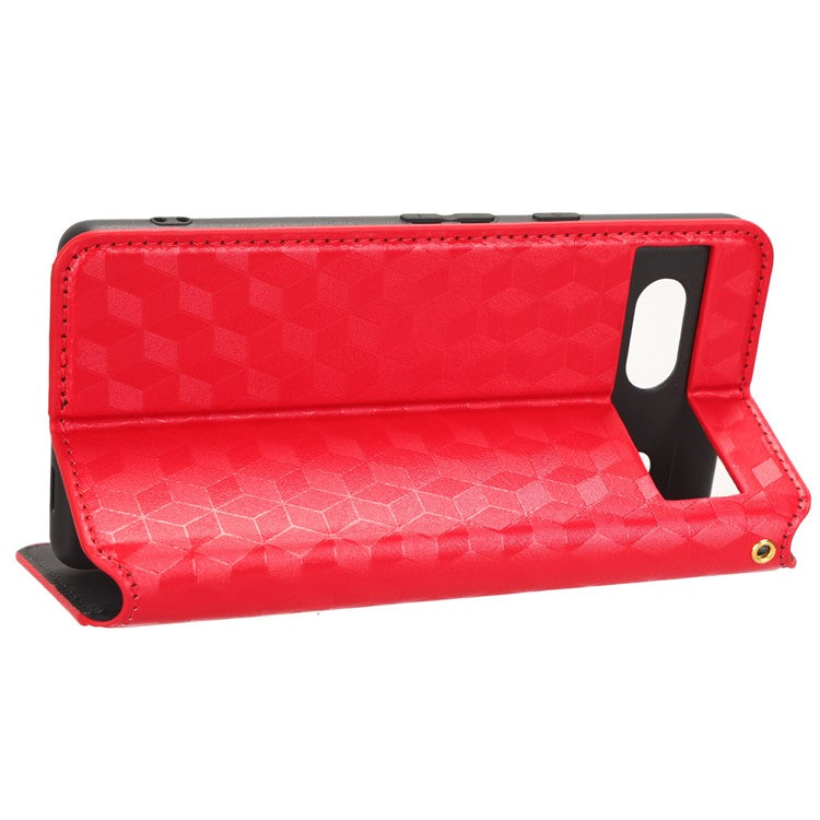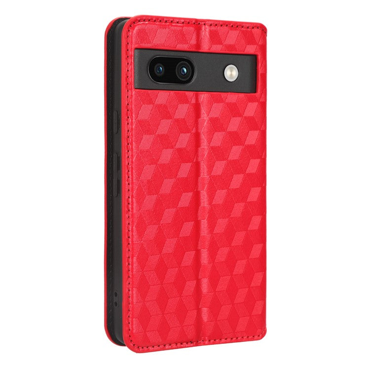 Wallet Phone Case for Google Pixel 7a , PU Leather Imprinted Rhombus Pattern Flip Folio Stand Phone Cover - Red