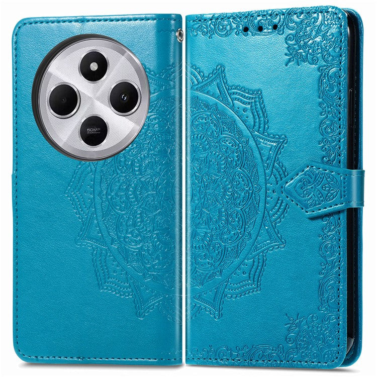 Wallet Phone Case For Xiaomi Redmi 14C 4G / 14R 5G / Poco C75 4G Mandala Flower Leather Phone Cover Stand View - Blue