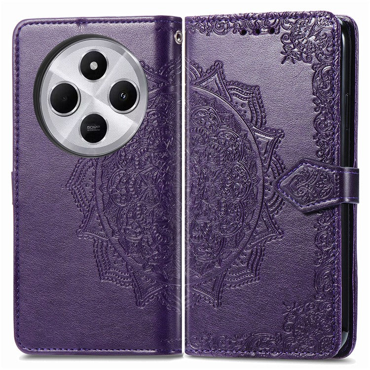 Wallet Phone Case For Xiaomi Redmi 14C 4G / 14R 5G / Poco C75 4G Mandala Flower Leather Phone Cover Stand View - Purple