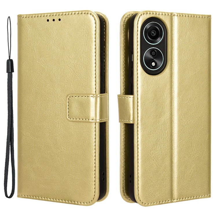 Wallet PU Leather Phone Cover for Oppo A58 4G , Crazy Horse Texture Stand Phone Case - Gold
