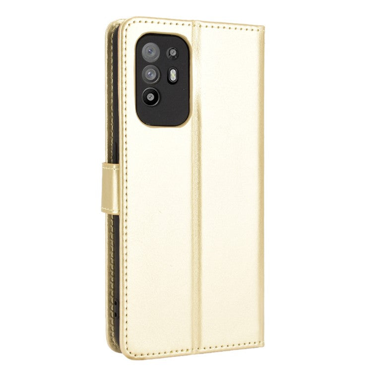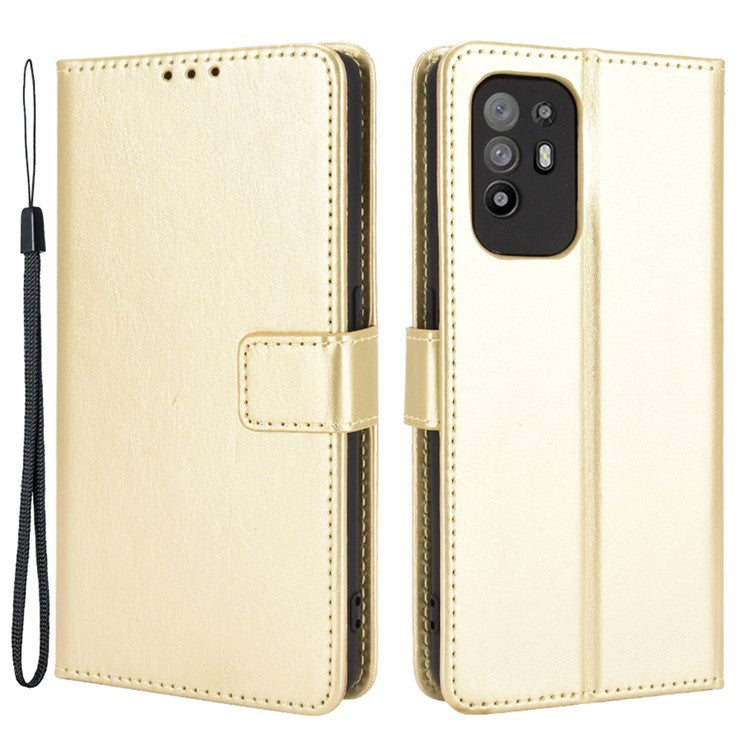 Wallet Stand Design Crazy Horse Skin Leather Shell with Strap for Oppo A94 5G/Reno5 Z/F19 Pro+ 5G - Gold