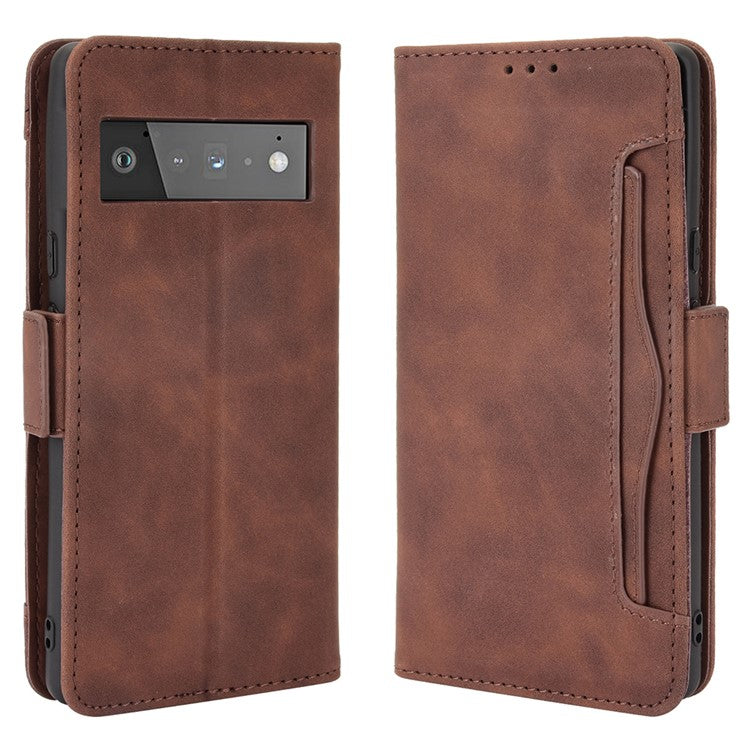 Wallet Stand Design Phone Cover Case with Multiple Card Slots for Google Pixel 6 - Brown