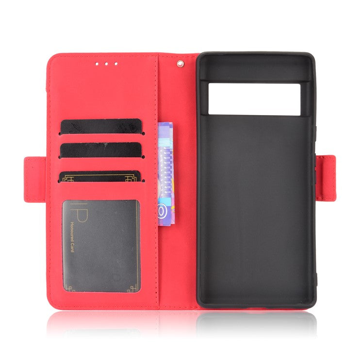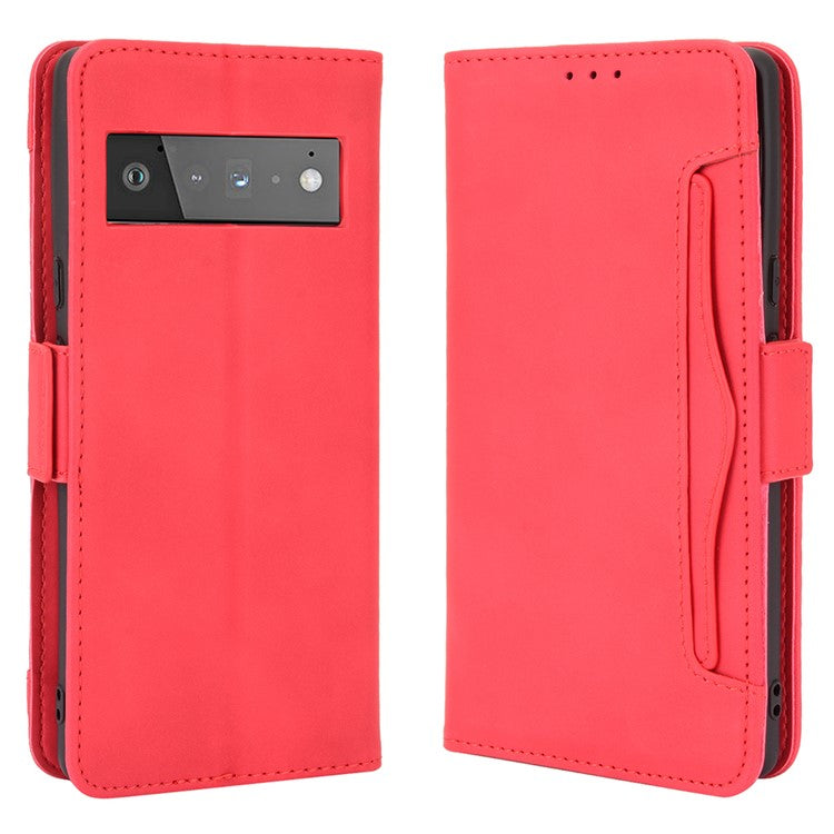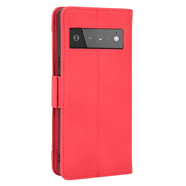Wallet Stand Design Phone Cover Case with Multiple Card Slots for Google Pixel 6 - Red