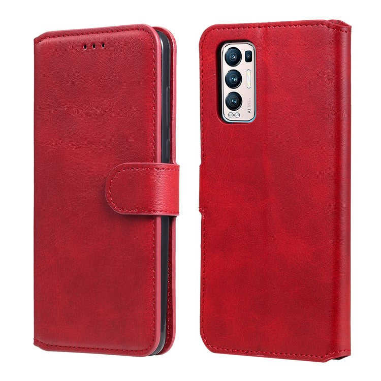 Wallet Stand Flip Leather Phone Case for Oppo Reno5 Pro+ 5G / Find X3 Neo - Red