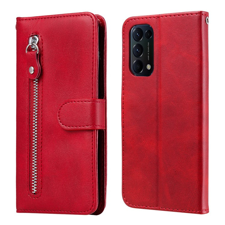 Wallet Stand Leather Protective Phone Case Zipper Pocket Design Cover Shell for Oppo Reno5 5G/Reno5 4G/Reno5 K/Find X3 Lite - Red