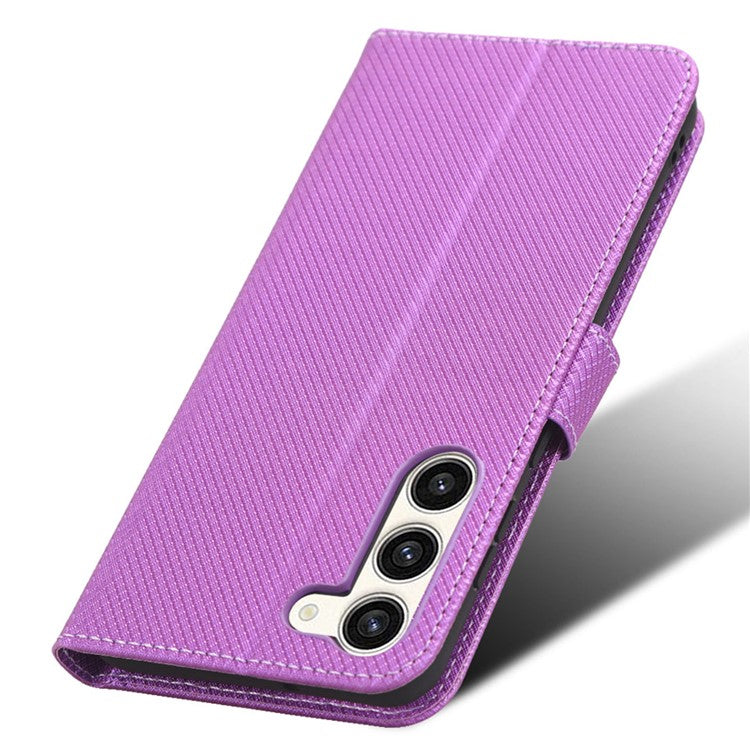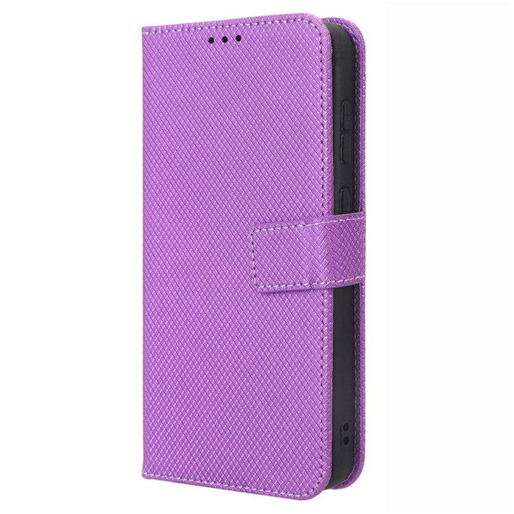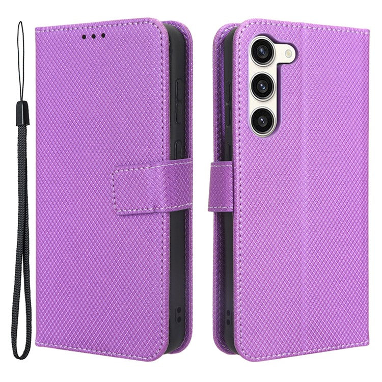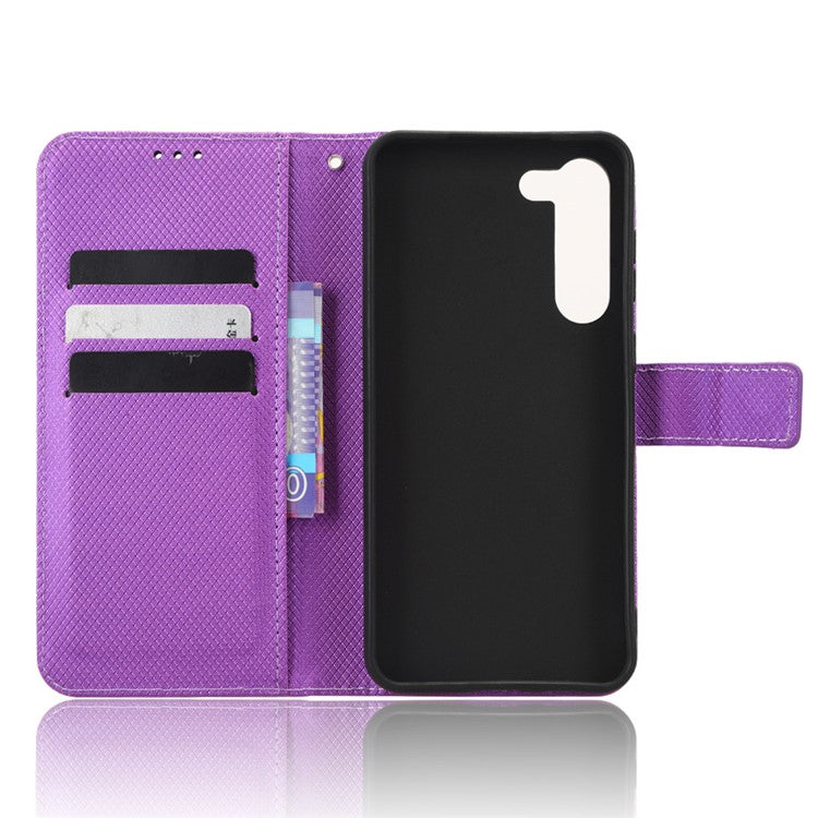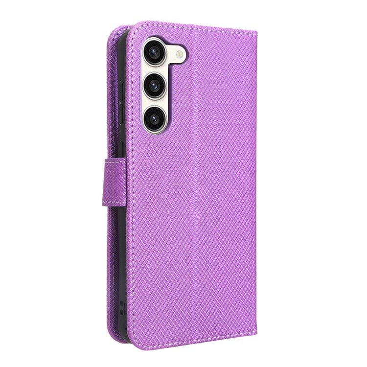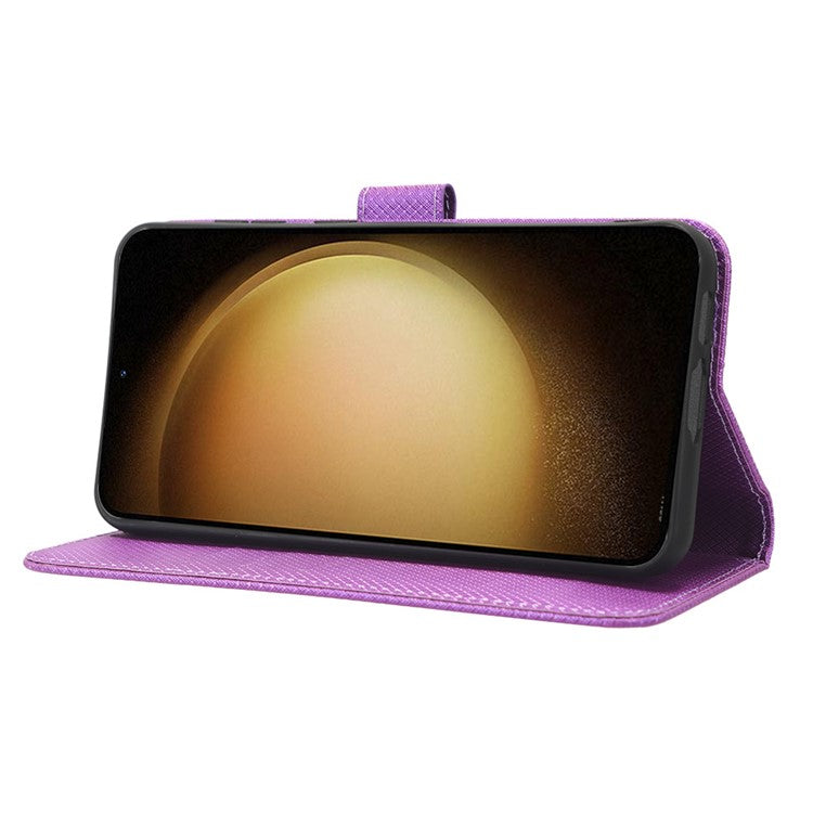 Wallet Stand Phone Case for Samsung Galaxy S23+, Anti-scratch Diamond Texture PU Leather Phone Cover - Purple