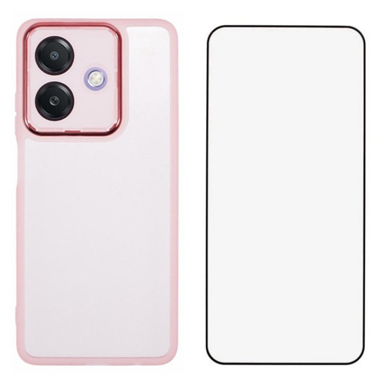 WANLONFENG DKSM Series for Oppo A3x 5G (India) TPU Case Electroplated Frame with Tempered Glass - Transparent Pink